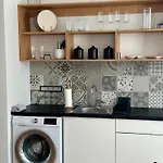 - ❓Czy w apartamencie znajduje się kuchnia do użytku gości?Tak, ten apartament wyposażony jest w pełnowymiarową kuchnię i oferuje czajnik elektryczny, lodówkę i szklane naczynia.